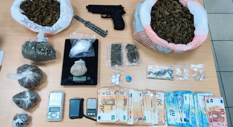 Κατασχέθηκαν μεταξύ άλλων περίπου 1500 γραμμάρια κάνναβης, 60 γραμμάρια κοκαΐνης και 40 γραμμάρια ηρωίνης.