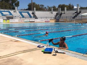 Το ανοικτό κολυμβητήριο του ΝΟΠ είναι η ευχάριστη επιλογή της Νόρας για την μεσημβρινή της προπόνηση.