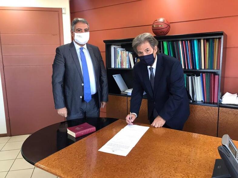 Στην φωτογραφία ο κ. Μπάκος υπογράφει τον διορισμό του ενώπιον του Διοικητή της 6ης ΥΠΕ Γιάννη Καρβέλη