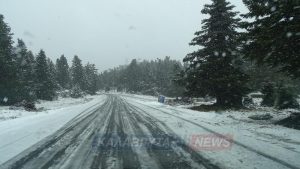 Πυκνές χιονοπτώσεις από χθες, που συνεχίζονται και σήμερα στον Χελμό, από τα 900 μέτρα και πάνω.