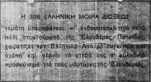 Και ο βετεράνος αεροπόρος της Μέσης Ανατολής πτέραρχος Κωνσταντίνος Χατζηλάκος συνεχίζει: «Η επιστροφή της 14ης Νοεμβρίου 1944 δεν ήταν ημέρα χαράς για όλους αλλά μονάχα για λίγους. Για τους πιο πολλούς ήταν φαρμάκι. Ήταν θρήνος. Ναι, για τους πιο πολλούς. Εμείς οι λίγοι ήμαστε οι τυχεροί, κι αυτοί που δεν επέστρεψαν ήταν οι πιο πολλοί. Από τους αρχικούς 22 χειριστές που επανδρώσαμε κατά την ίδρυσή της την 336 Μοίρα τον Φεβρουάριο του 1943, επιστρέψαμε μόνο επτά. Δεν επέστρεψαν 15. Έντεκα σκοτώθηκαν, ενώ άλλοι τέσσερεις που είχαν κηρυχθεί αγνοούμενοι κατά την διάρκεια αποστολών εναντίον γερμανικών στόχων στην Κρήτη είχαν χτυπηθεί από αντιαεροπορικά, αλλά ήταν από τους τυχερούς που διασώθηκαν με αναγκαστικές προσγειώσεις και είχαν αιχμαλωτιστεί. Απ’ τους υπόλοιπους χειριστές της Μοίρας σκοτώθηκαν αργότερα άλλοι οκτώ. Με την επιστροφή αυτή έκλεισε μια περίοδος αγώνων της αεροπορίας μας εκτός Ελλάδος, ως συνέχεια των αγώνων στα Ηπειρωτικά βουνά».
