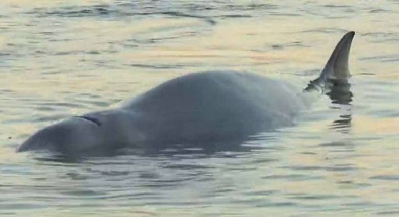 Σύμφωνα με την τηλεόραση του ΣΚΑΙ, πρόκειται για μια φάλαινα φυσητήρα η οποία εξόκειλε στα ρηχά της παραλίας του Αλίμου.