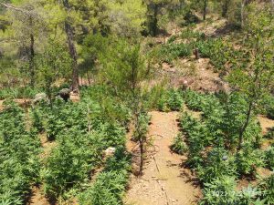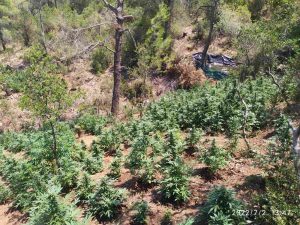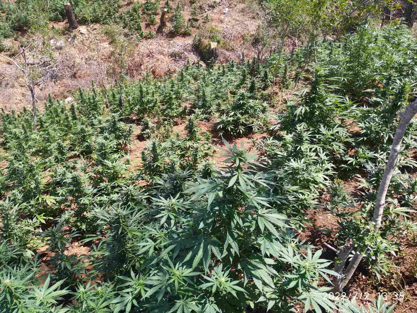 Ειδικότερα, οι αστυνομικοί εντόπισαν σε πυκνή δασώδη περιοχή, σε ειδικά διαμορφωμένο χώρο με φυσική κάλυψη από βλάστηση, οργανωμένη φυτεία κάνναβης, αποτελούμενη από (1.210) δενδρύλλια της ναρκωτικής ουσίας.