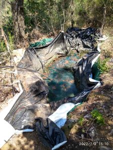 • δύο αυτοσχέδιους χώρους συλλογής υδάτων, με νάιλον και κορμούς δένδρων