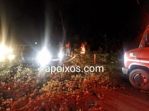 Οι άνεμοι που έφθαναν ακόμη και τα 8-9 μποφόρ είχαν ως αποτέλεσμα να ξεριζώσουν δένδρα στην εθνική οδό Πατρών-Πύργου, στο ύψος του Λάππα, που κατέληξαν πάνω σε δύο διερχόμενα οχήματα.