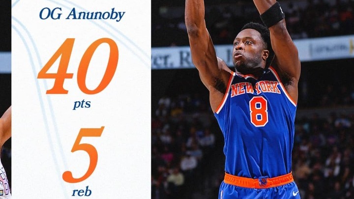 Ο Οου Τζι Ανουνόμπι σημείωσε ρεκόρ καριέρας με 40 πόντους, ο Καρλ-Άντονι Τάουνς είχε 30 πόντους και 15 ριμπάουντ, και οι Νικς επικράτησαν των Νάγκετς στο Ντένβερ με 145-118.