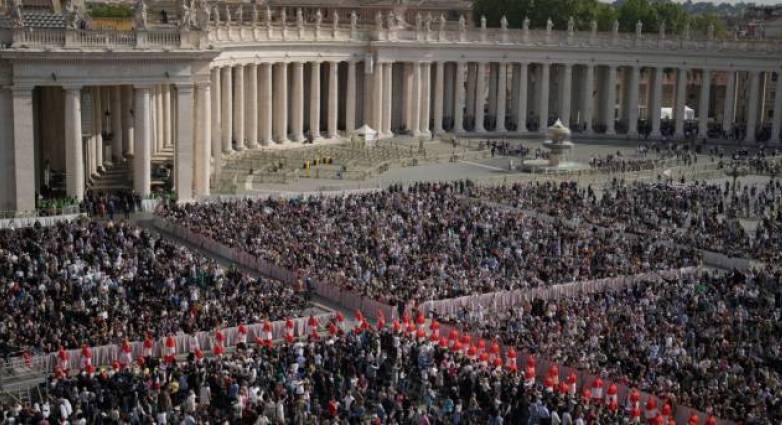 Κοσμοσυρροή στην Πλατεία του Αγίου Πέτρου, όπου περίπου 20.000 πιστοί έχουν συγκεντρωθεί για να αποτίσουν φόρο τιμής στον Πάπα Φραγκίσκου.