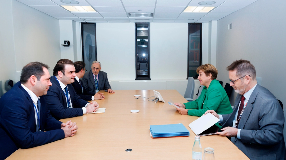Η κυρία Γκεοργκίεβα συναντήθηκε με τον υπουργό Οικονομικών, Κυριάκο Πιερρακάκη, στο πλαίσιο της Εαρινής Συνόδου του ΔΝΤ στην Ουάσιγκτον. Όπως επισήμανε μετά την ολοκλήρωση της συνάντησης, η Ελλάδα έχει σημειώσει αξιοσημείωτη πρόοδο τα τελευταία χρόνια, καθώς καταγράφει ορισμένες από τις καλύτερες επιδόσεις στην Ευρωπαϊκή Ένωση.