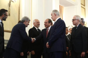 Από την πλευρά του, ο Αλ-Σίσι ευχαρίστησε τον Έλληνα ομόλογό του για τη θερμή υποδοχή, υπενθυμίζοντας ότι αυτή είναι η πέμπτη του επίσκεψη στην Ελλάδα – γεγονός που, όπως σημείωσε, «αποδεικνύει τη θετική πορεία των διμερών σχέσεων».