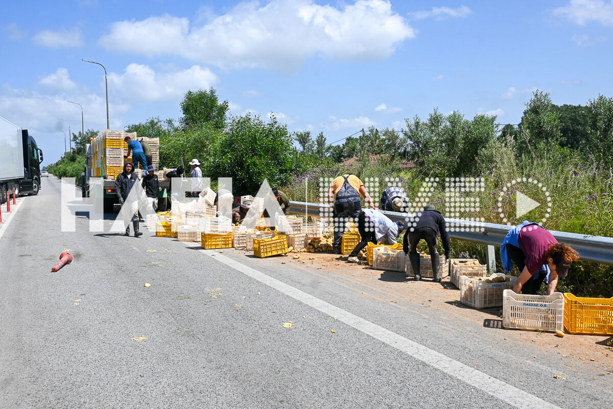 Γέμισε με πατάτες η εθνική οδός Πατρών-Πύργου