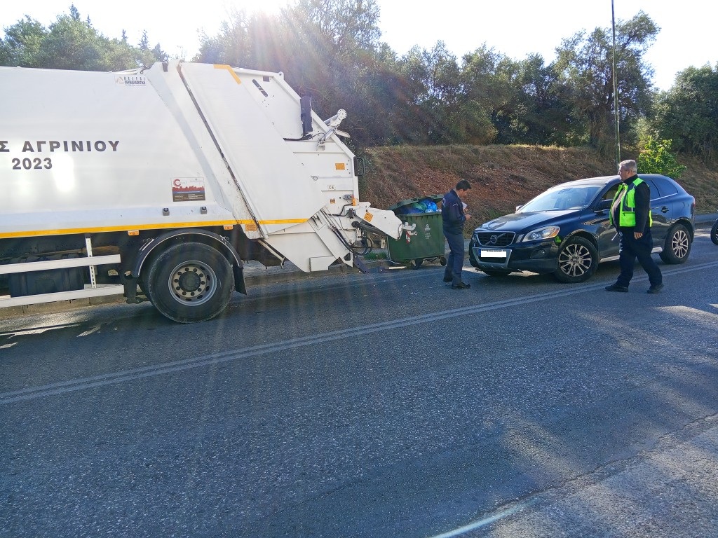 Στο τροχαίο ενεπλάκησαν ένα απορριμματοφόρο του δήμου Αγρινίου και ένα ΙΧ.