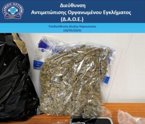 Σύμφωνα με την ελληνική αστυνομία, στελέχη της Διεύθυνσης Αντιμετώπισης Οργανωμένου Εγκλήματος συνέλαβαν, χθες (σ.σ. 25.05.2025), σε περιοχές της Αττικής, δύο άντρες, ηλικίας 49 και 41 ετών, για κατοχή και διακίνηση ναρκωτικών ουσιών.
