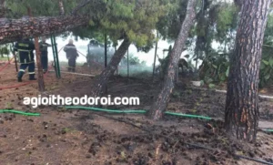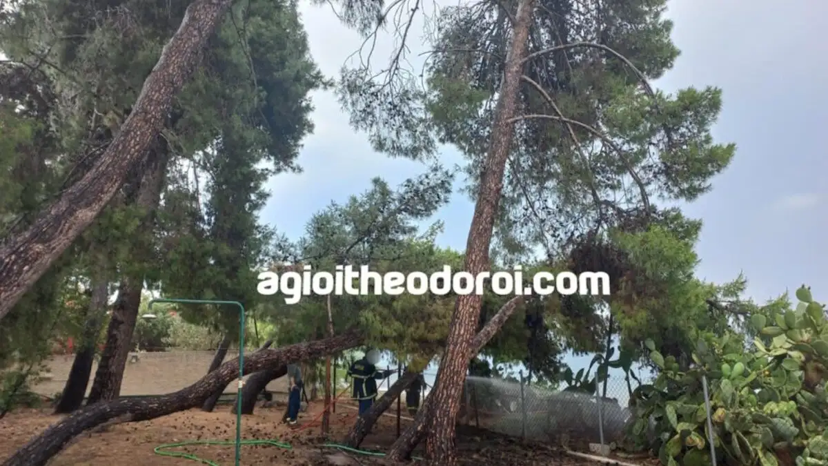 Από τον κεραυνό πήραν φωτιά δύο πεύκα μέσα στην αυλή της σπιτιού του πρώην πρωθυπουργού, Κώστα Σημίτη στους Αγίους Θεοδώρους.