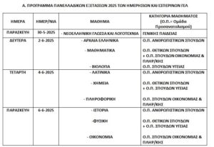 Από το Υπουργείο Παιδείας, Θρησκευμάτων και Αθλητισμού ανακοινώνεται το πλήρες πρόγραμμα των Πανελλαδικών Εξετάσεων έτους 2025.