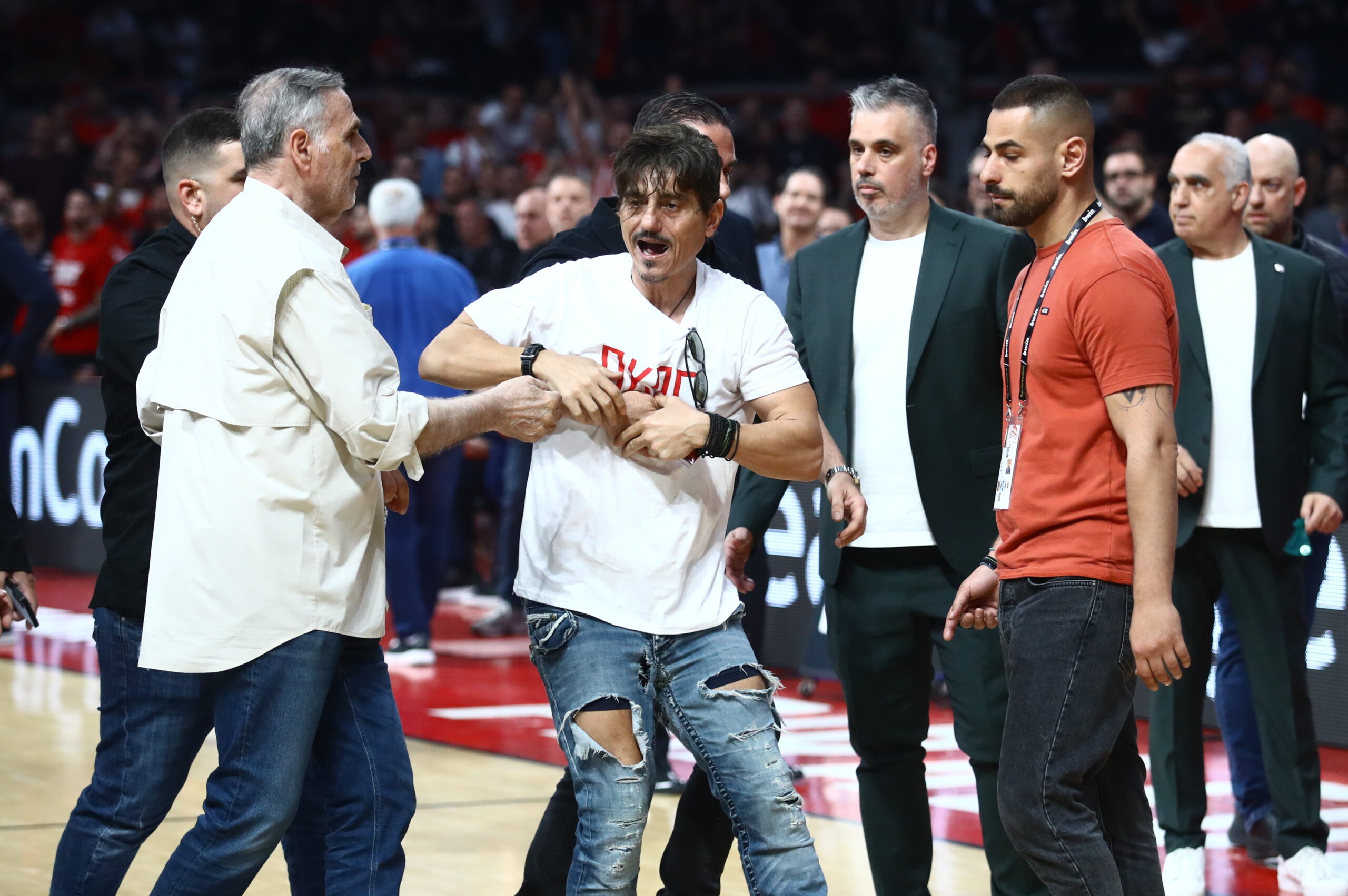 Έπειτα από ένταση που σημειώθηκε και χειρονομίες, του ζητήθηκε ν’ αποχωρήσει, κάτι που τελικά συνέβη έπειτα και από τις πιέσεις των διαιτητών.