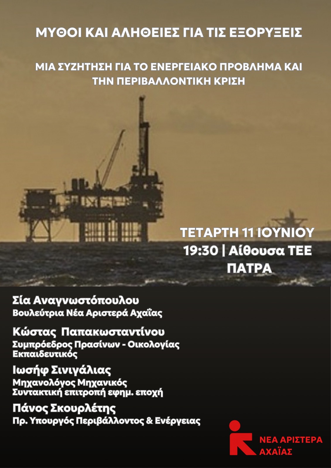 Εκδήλωση για τις εξορύξεις και το ενεργειακό πρόβλημα από τη Νέα Αριστερά Αχαΐας