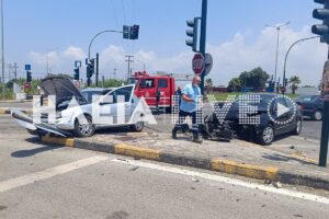 Δύο επιβατηγά αυτοκίνητα υπό συνθήκες που ερευνά το Τμήμα Τροχαίας Ήλιδας συγκρούστηκαν πλαγιομετωπικά στη διασταύρωση.