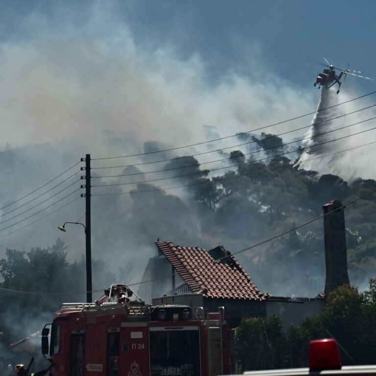 Σύμφωνα με τον δήμαρχο Κρωπίας, Δημήτρη Κιούση, οι φλόγες έχουν φτάσει στις αυλές σπιτιών.