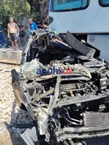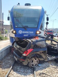 Το τρένο συγκρούστηκε με Ι.χ. το οποίο σφήνωσε από κάτω.