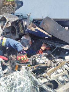 Ο οδηγός του ΙΧ απεγκλωβίστηκε από διασώστες του ΕΚΑΒ και της Πυροσβεστικής. Φέρει θλαστικό τραύμα κεφαλής καθώς και άλλες κακώσεις, μη απειλητικές για τη ζωή. Διακομίστηκε με Κινητή Ιατρική Μονάδα στο νοσοκομείο Άγιος Ανδρέας.