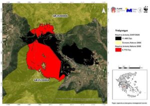 Επιπροσθέτως, η πυρκαγιά έχει επηρεάσει μέχρι στιγμής 2 περιοχές Natura 2000, την περιοχή GR2530006 ( Όρος Ζήρεια), όπου έκαψε 910 στρέμματα, και την περιοχή GR2530004 ( Όρος Ολίγυρτος ), όπου έκαψε 4.860 στρέμματα (Εικόνα 3).