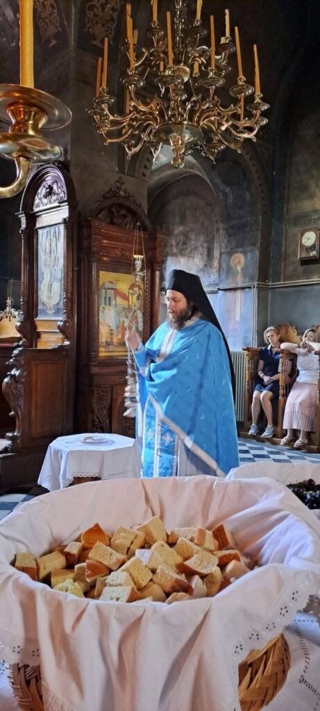 Μετά το πέρας της Λειτουργίας, πραγματοποιήθηκε η καθιερωμένη ευλογία των σταφυλιών, σύμφωνα με την παράδοση της Εκκλησίας μας, η οποία συνδέεται με την καρποφορία και τη μεταμόρφωση της ζωής του πιστού.