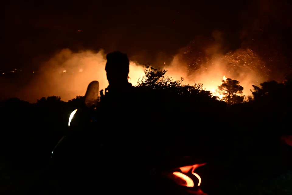 Οι φλόγες κινούνται πλέον προς παραλιακές ζώνες, με τις δυνάμεις της Πυροσβεστικής να επιχειρούν διαρκώς για να αποτρέψουν την εξάπλωση.