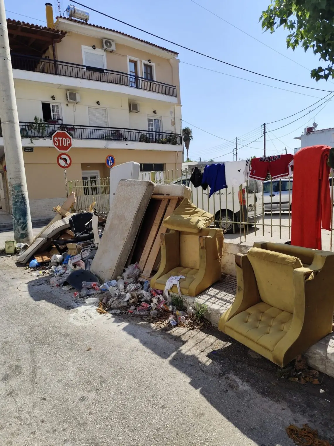 Παλιά έπιπλα, στρώματα και σακούλες σκουπιδιών στοιβάζονται στα πεζοδρόμια, μετατρέποντας την καθημερινότητα των κατοίκων σε έναν διαρκή αγώνα με την εικόνα της βρωμιάς και της δυσοσμίας.