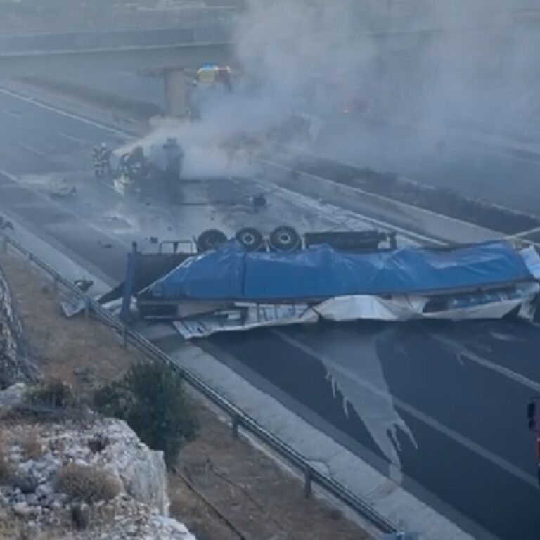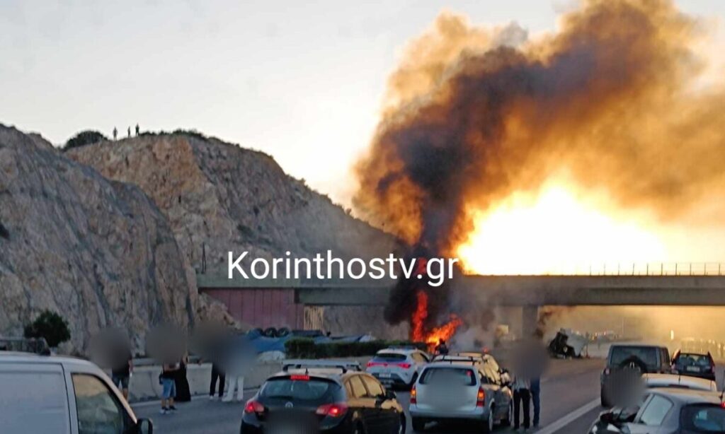 Τροχαίο με νταλίκα στα Μέγαρα: Το όχημα πήρε φωτιά, κλειστή η εθνική οδός Αθηνών Κορίνθου – βίντεο