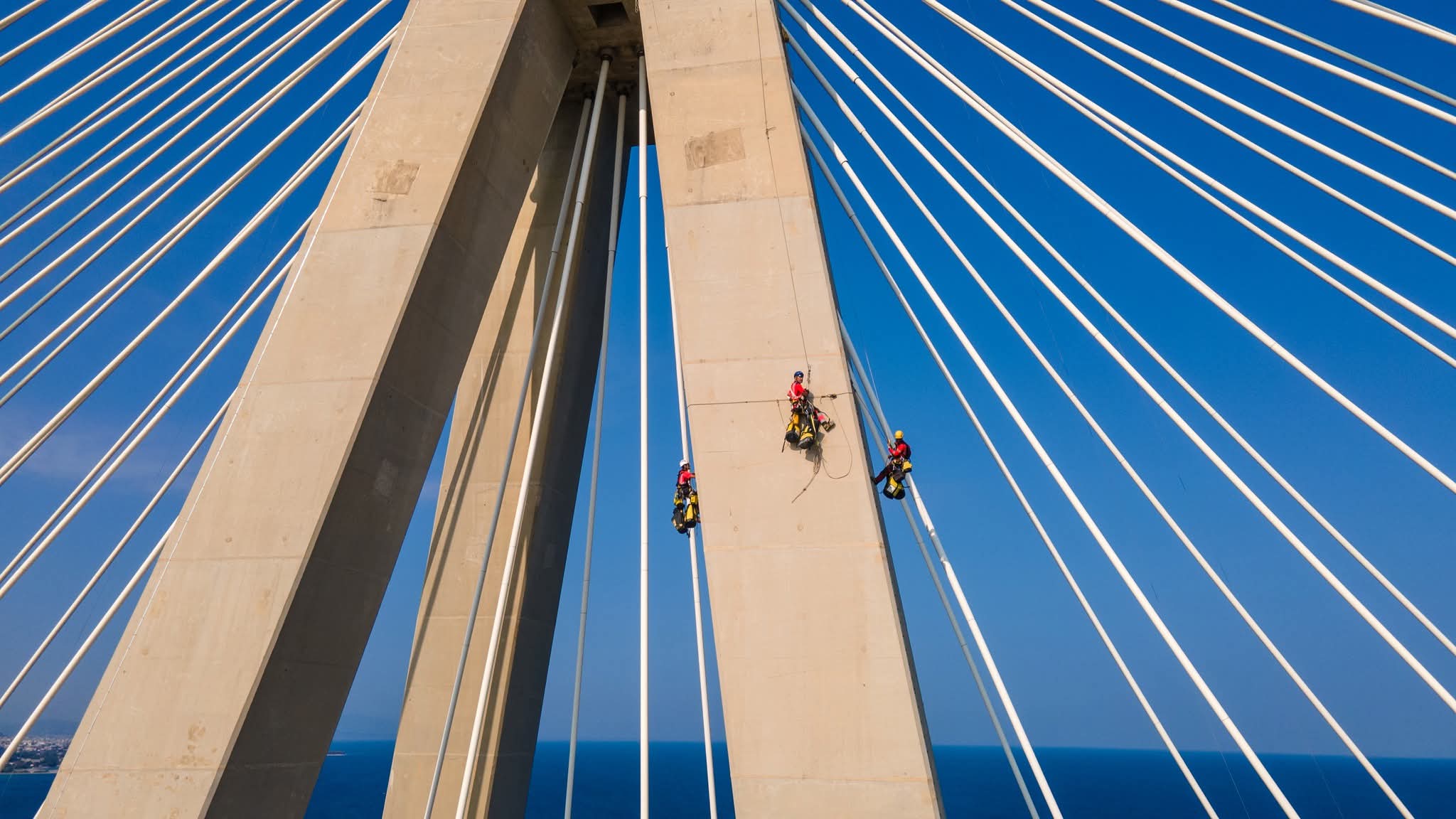 Έτοιμοι να πιάσουν “δουλειά” είναι οι Αλπινιστές που κάθε χρόνο κρέμονται στην κυριολεξία στο κενό από τους πυλώνες της Γέφυρας Ρίου Αντιρρίου!