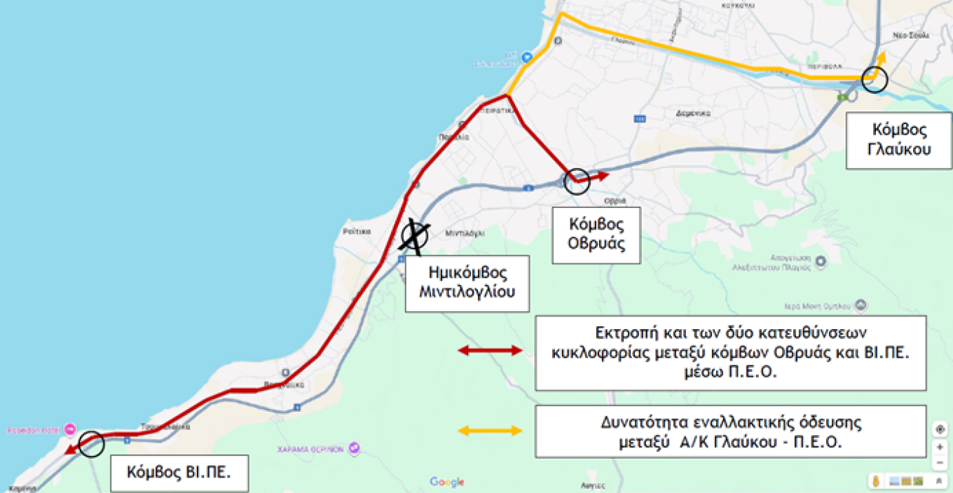 Η εκτροπή αυτή αποτελεί αναγκαίο στάδιο για την ασφαλή και έγκαιρη πρόοδο των εργασιών από τον αρμόδιο κατασκευαστή (ΚΞ ΑΠΙΟΝ ΚΛΕΟΣ/ εταιρία ΑΒΑΞ) και διασφαλίζει την ολοκλήρωση του έργου, το οποίο θα συμβάλει ουσιαστικά στη βελτίωση της οδικής ασφάλειας, τη μείωση του χρόνου μετακίνησης, αναβαθμίζοντας μόνιμα τις μετακινήσεις και την ποιότητα ζωής στην περιοχή.