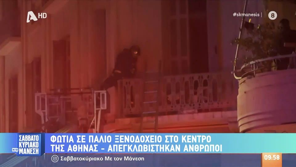 Απεγκλωβίστηκαν άνθρωποι από τη φωτιά σε παλιό ξενοδοχείο στο κέντρο της Αθήνας.