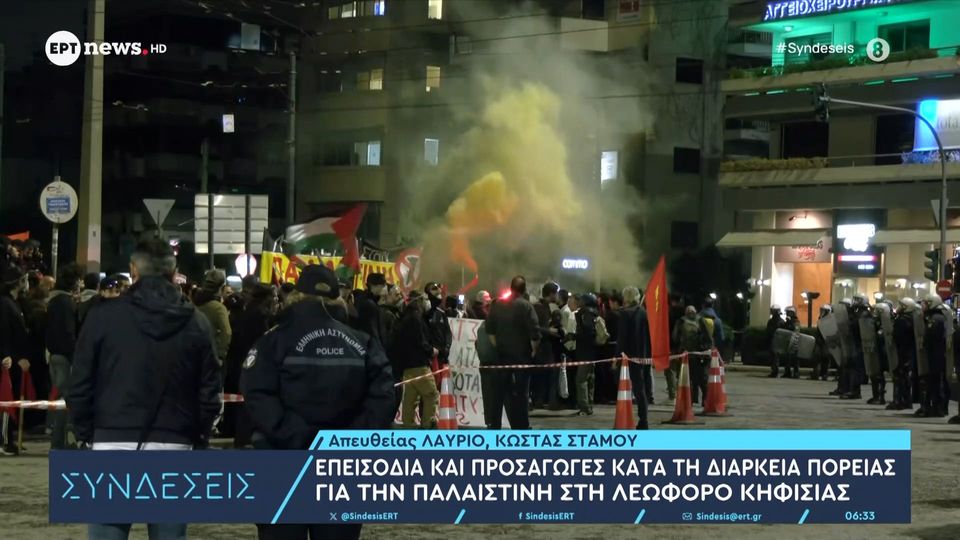 Επεισόδια και προσαγωγές κατά τη διάρκεια πορείας για την Παλαιστίνη στη Λεωφόρο Κηφησίας.