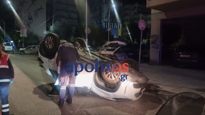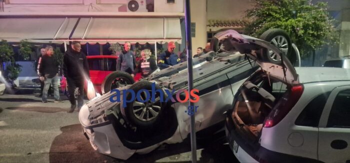 Για άγνωστο λόγο, πιθανόν μετά από πρόσκρουση σε κάποιο όχημα, όπως η οδηγός υποστήριξε, το όχημά της ανετράπη και στη συνέχεια έπεσε πάνω σε ένα άλλο σταθμευμένο. Η οδηγός παρέμεινε εγκλωβισμένη και… ανάποδα, μέχρι που την έβγαλαν έξω από το όχημα και ευτυχώς δεν είχε υποστεί το παραμικρό.