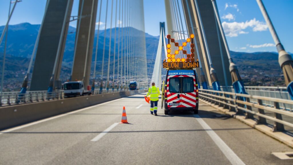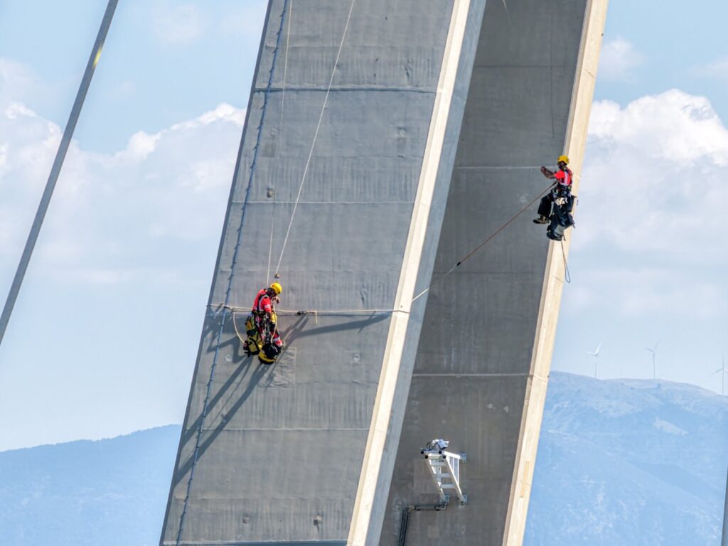 Βραχυπρόθεσμες κυκλοφοριακές ρυθμίσεις στη Γέφυρα Ρίου-Αντιρρίου για εργασίες συντήρησης σε μεγάλο ύψος στον πυλώνα Μ1 (Ρίο) με συμμετοχή αλπινιστών.