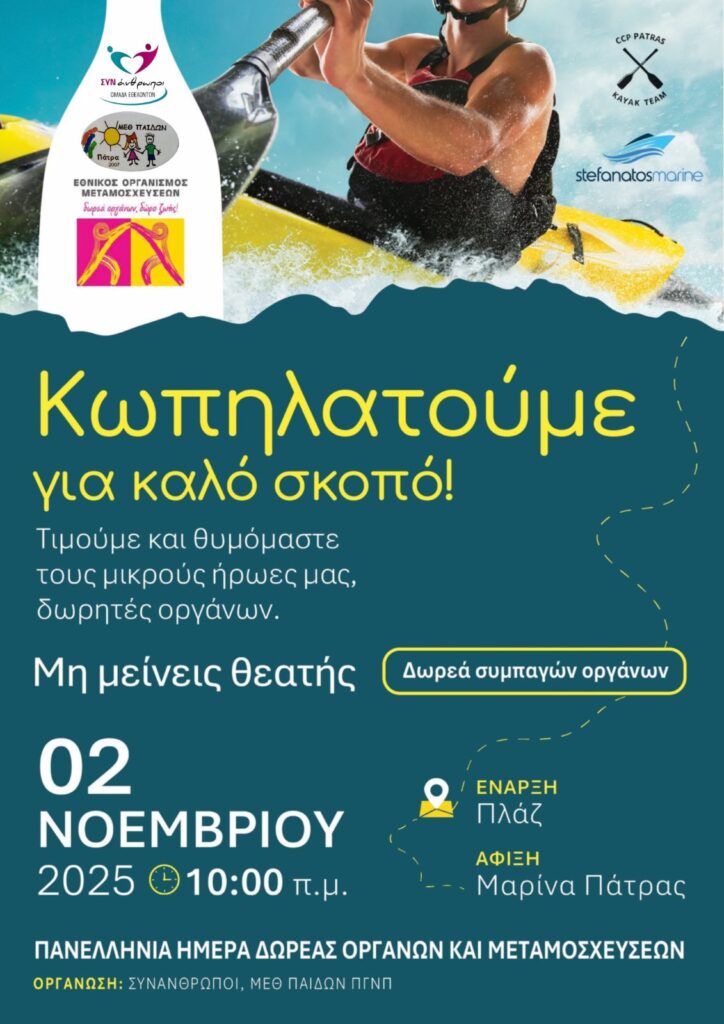 Επίσης την Κυριακή 2/11/2025 στις 10:00 π.μ. θα πραγματοποιηθεί κωπηλατικός «διάπλους» με αφετηρία την περιοχή της Πλαζ και σημείο τερματισμού το Θεατράκι της Πάτρας, με την συμμετοχή μελών του Συλλόγου CCP Patras KAYAK Team στη μνήμη των παιδιών.