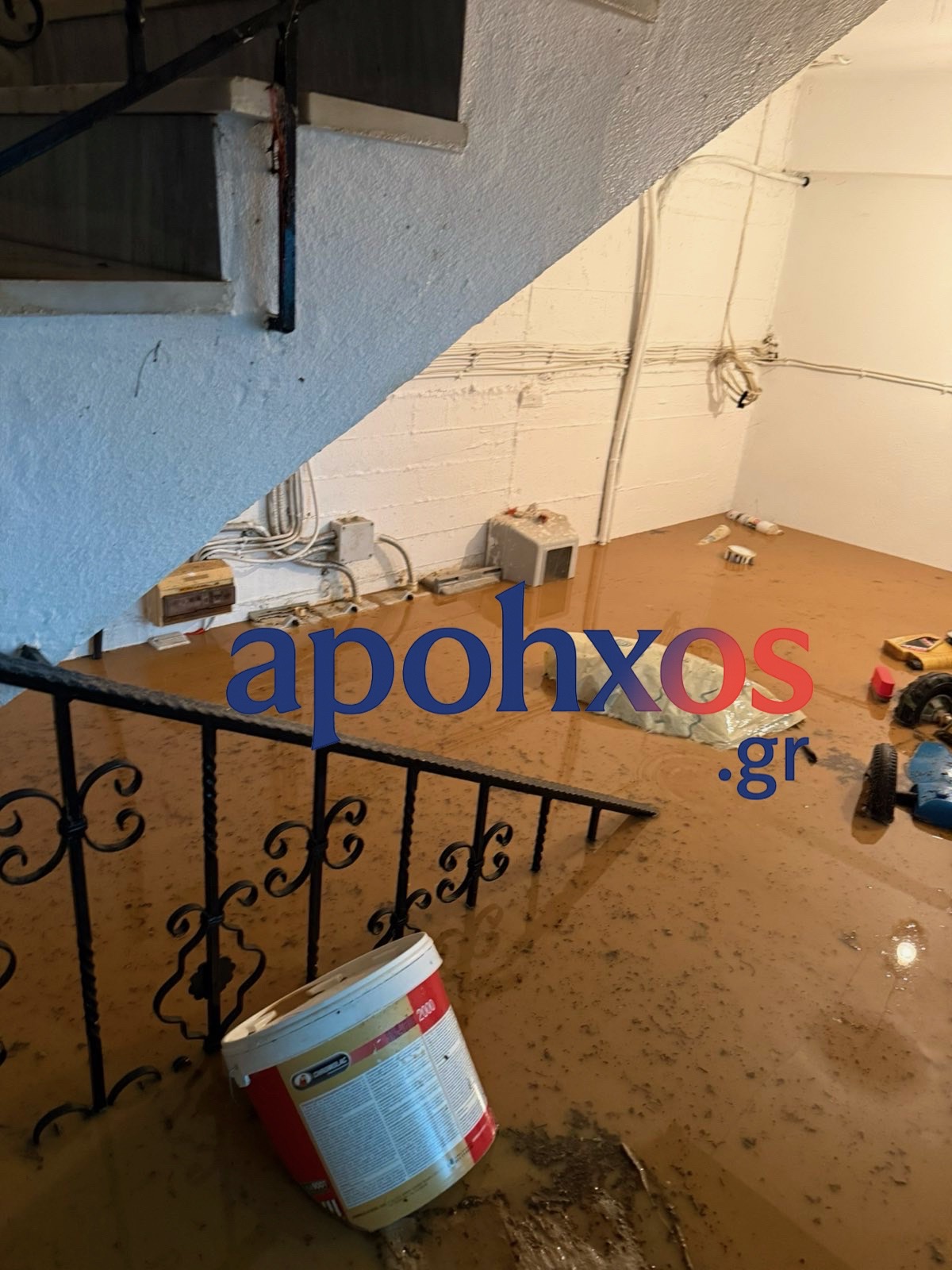 Σύμφωνα με πληροφορίες πλημμυρικά φαινόμενα παρατηρήθηκαν στην περιοχή με περισσότερα από 10 υπόγεια σπιτιών να γεμίζουν με νερά.
