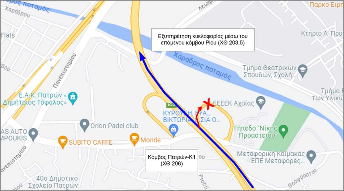 Κατά τη διάρκεια των εργασιών, η έξοδος του Ανισόπεδου Κόμβου Κ1 της Περιμετρικής Πατρών προς την οδό Διοδώρου στο ρεύμα προς Αθήνα θα παραμείνει κλειστή και η κυκλοφορία των οχημάτων θα πραγματοποιείται από τον Α/Κ Ρίου. Επί της οδού Διοδώρου η κυκλοφορία θα εξυπηρετείται από την παράπλευρη οδό με την βοήθεια σηματωρών, προκειμένου να γίνεται διευθέτηση της κυκλοφορίας με ασφάλεια.
