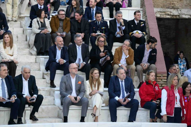 διοργάνωσαν σήμερα στις 4 το μεσημέρι τα εγκαίνια των έργων Αποκατάσταση, συντήρηση και διαμόρφωση περιβάλλοντος χώρου του Ρωμαϊκού Ωδείου Πατρών Λειτουργικός φωτισμός και ανάδειξης του μνημείου.