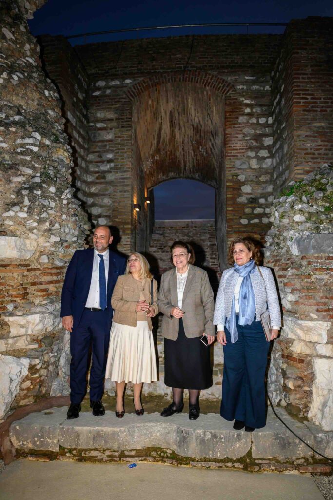 Στον χαιρετισμό της, η Υπουργός Πολιτισμού Λίνα Μενδώνη αναφέρθηκε στην πορεία του έργου, από τις πρώτες συζητήσεις έως την ολοκλήρωσή του, υπογραμμίζοντας τη σημασία που έχει η επαναφορά του Ωδείου στη ζωή της Πάτρας: