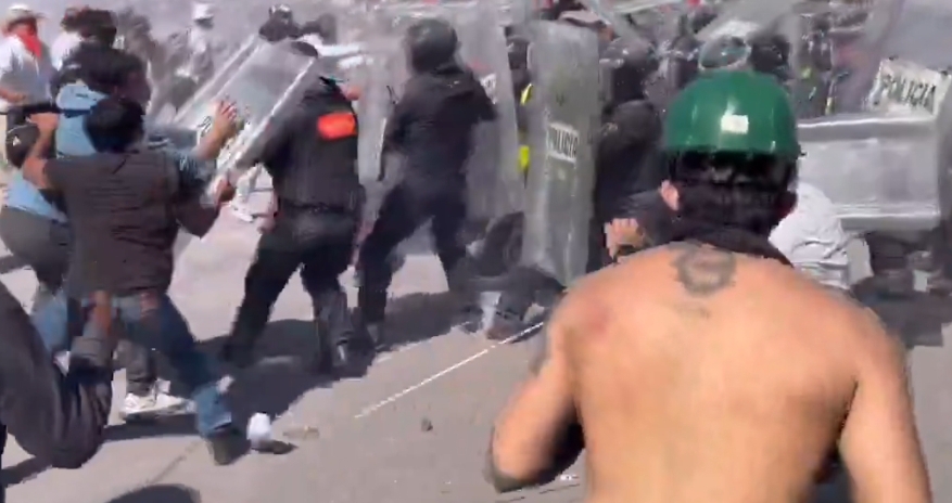 🇲🇽🔥 Massive protest at Mexico City’s presidential palace today. Young demonstrators accuse Claudia Sheinbaum’s government of enabling cartel activity, they’re tearing down barriers, storming the walls, and clashing with riot police. pic.twitter.com/5VXc4ArNda