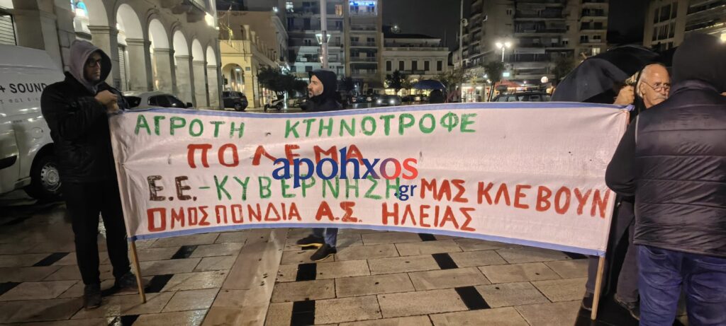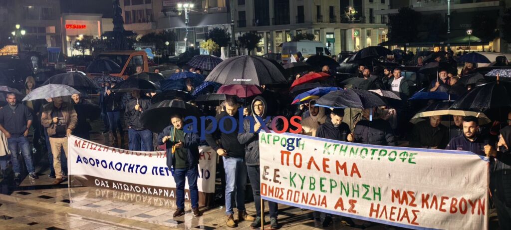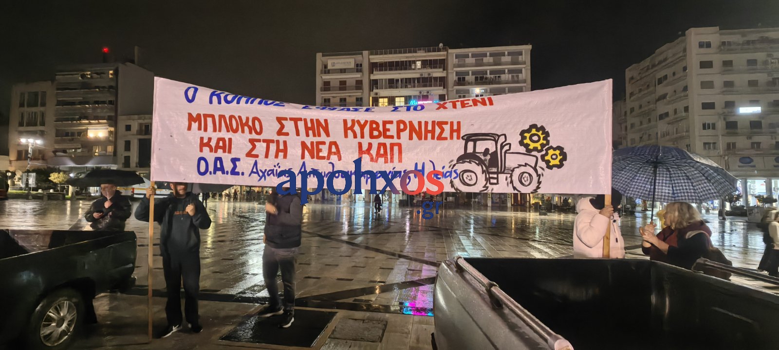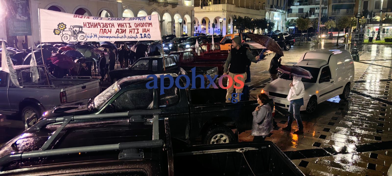 Παρά τη συνεχή βροχόπτωση που σημειώθηκε το απόγευμα του Σαββάτου στην Πάτρα, αγρότες από όλους τους νομούς της Περιφέρειας Δυτικής Ελλάδας συγκεντρώθηκαν στην πλατεία Γεωργίου με τα αγροτικά τους οχήματα, συμμετέχοντας στο περιφερειακό συλλαλητήριο που διοργανώθηκε από τις ομοσπονδίες τους.