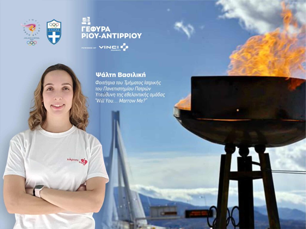 • 2η Λαμπαδηδρόμος: Βασιλική Ψάλτη, φοιτήτρια του τμήματος Ιατρικής του Πανεπιστημίου Πατρών, υπεύθυνη της εθελοντικής ομάδας δωρεάς μυελού των οστών “Will You… Marrow Me”