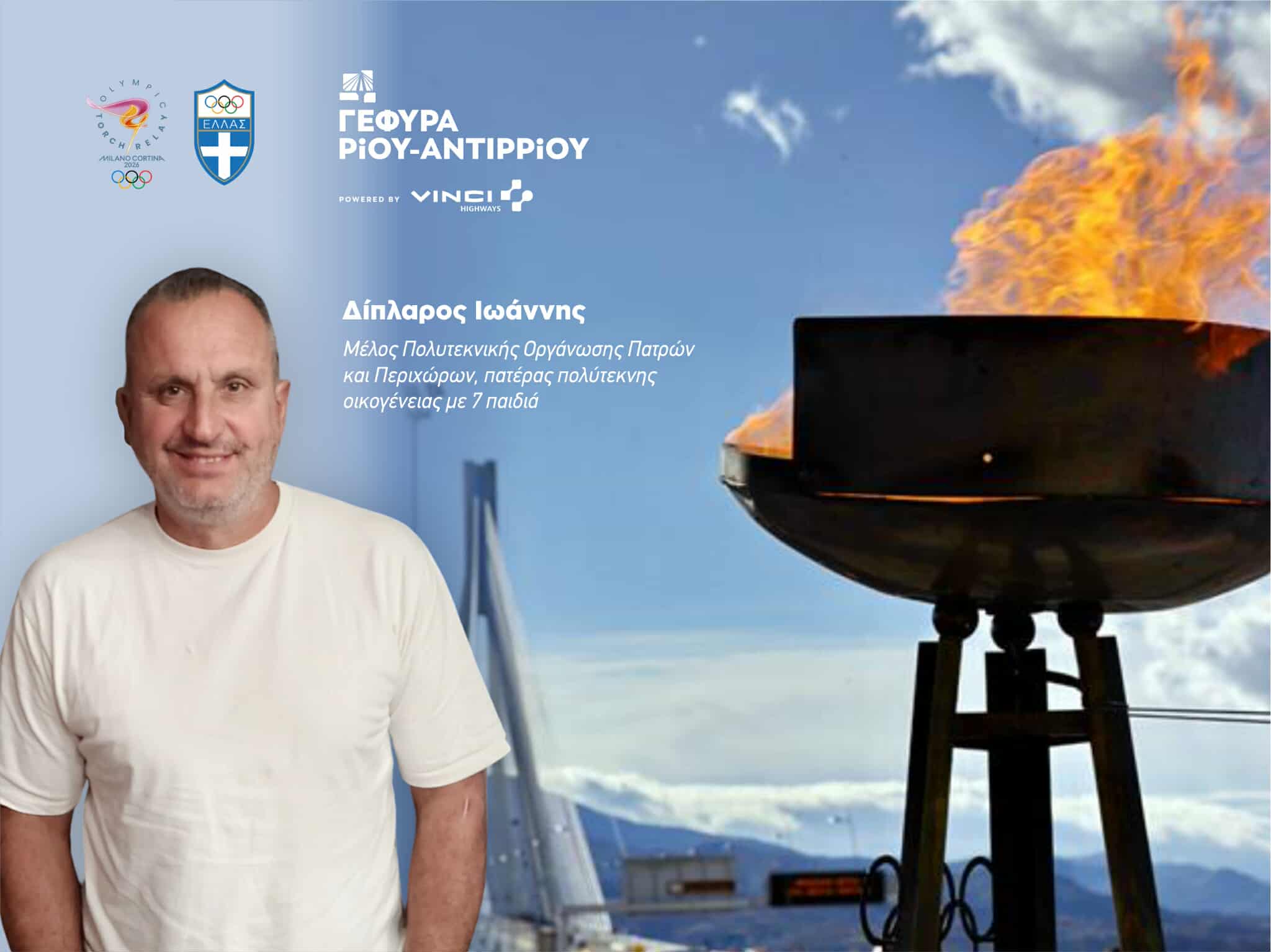 • 1ος Λαμπαδηδρόμος: Ιωάννης Δίπλαρος, πατέρας πολύτεκνης οικογένειας με 7 παιδιά, μέλος της Πολυτεκνικής Οργάνωσης Πατρών & Περιχώρων.