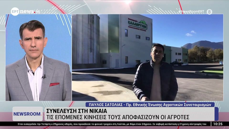 Ο Πρόεδρος Εθνικής Ένωσης Αγροτικών Συνεταιρισμών Παύλος Σατολιάς σχολιάζει τις αγροτικές κινητοποίησεις σε ζωντανή σύνδεση στην εκπομπή newsroom της ΕΡΤ.