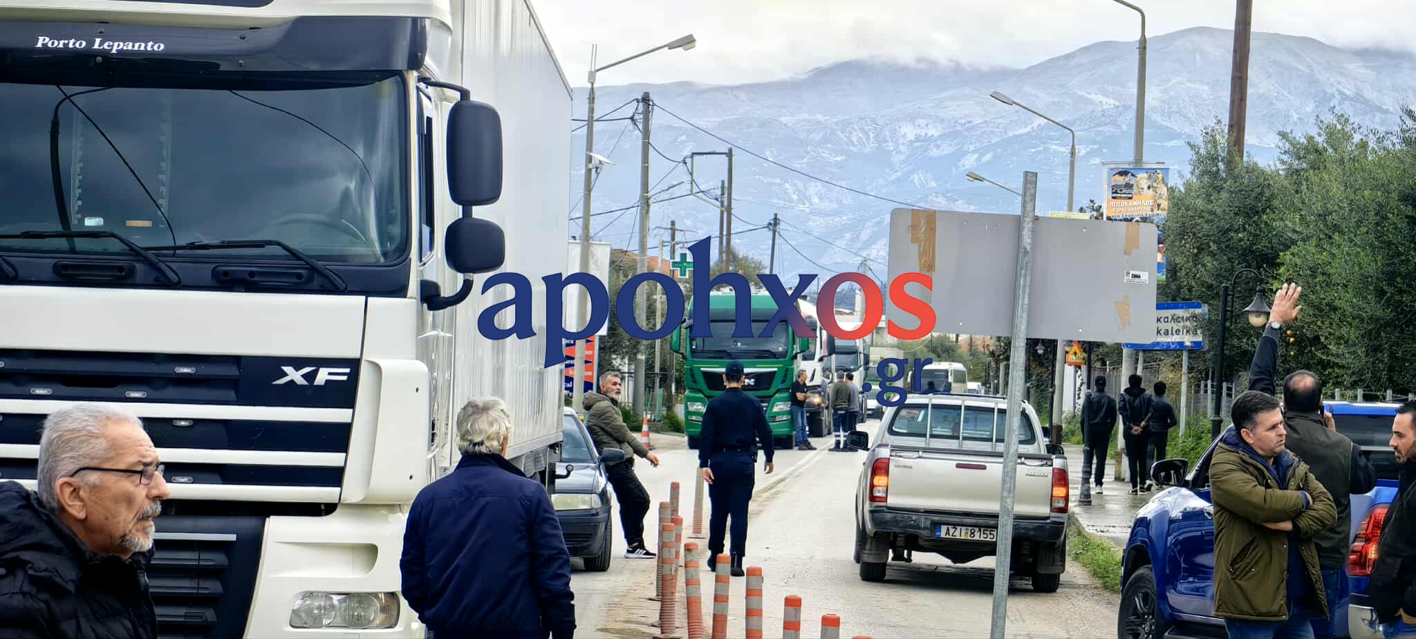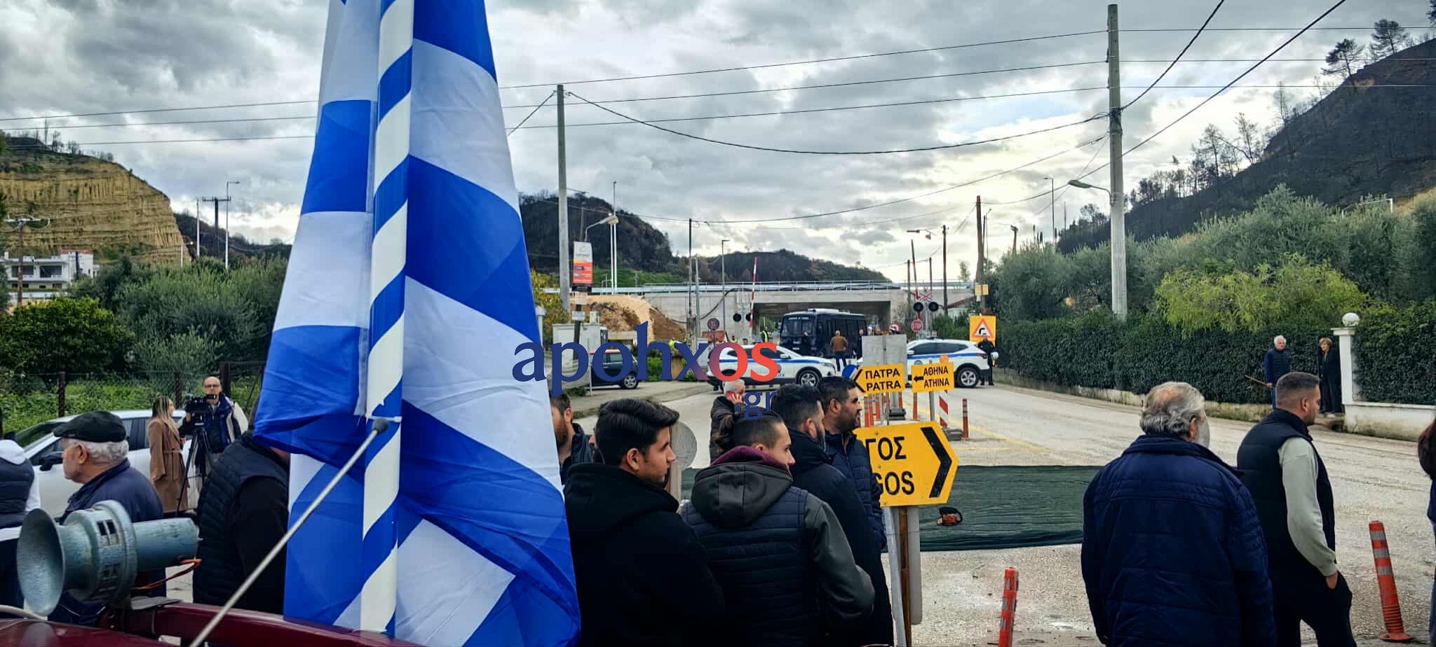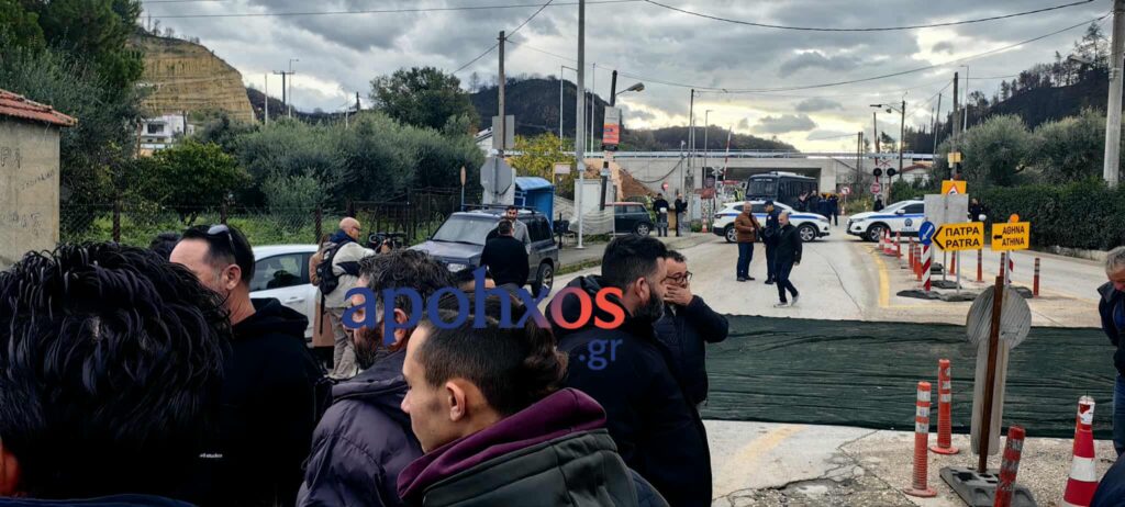 Αγρότες: Με τα αγροτικά τους προσπάθησαν να φτάσουν στο σημείο των εγκαινίων της Πατρών – Πύργου– Φρένο από την ΕΛ.ΑΣ. – Απέκλεισαν την παλαιά Εθνική οδό- Κατέβασαν σακιά με ελιές στο δρόμο- φωτο