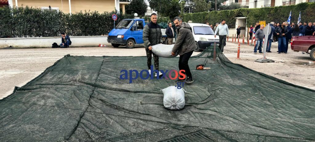 Νεότερα: Οι αγρότες έχοντας κλείσει την παλαιά εθνική οδός στο ύψος των καμινίων άπλωσαν… λιόπανο και κατέβασαν σάκια με ελιές εν μέση οδό!