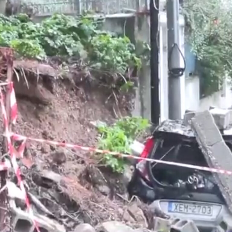 Συγκεκριμένα ο μαντρότοιχος οικοπέδου στην Βουλιαγμένη υποχώρησε εξαιτίας της τεράστιας έντασης νερού από την κακοκαιρία αυτό αυτό παρέσυρε το χώμα τα δέντρα και τα μπετά που τα στήριζαν καταστρέφοντας ολοσχερώς ένα σταματημένο αυτοκίνητο.
