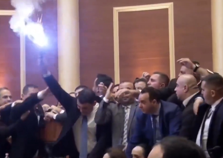 Bουλευτές της Αλβανίας άναψαν φωτοβολίδες, πέταξαν νερό στον πρόεδρο της Βουλής και πήραν θέση σε έδρανα του κοινοβουλίου που προορίζονται για υπουργούς της κυβέρνησης, σε μια προσπάθεια να διαταράξουν τη κοινοβουλευτική συνεδρίαση, πριν επέμβει η αστυνομία.