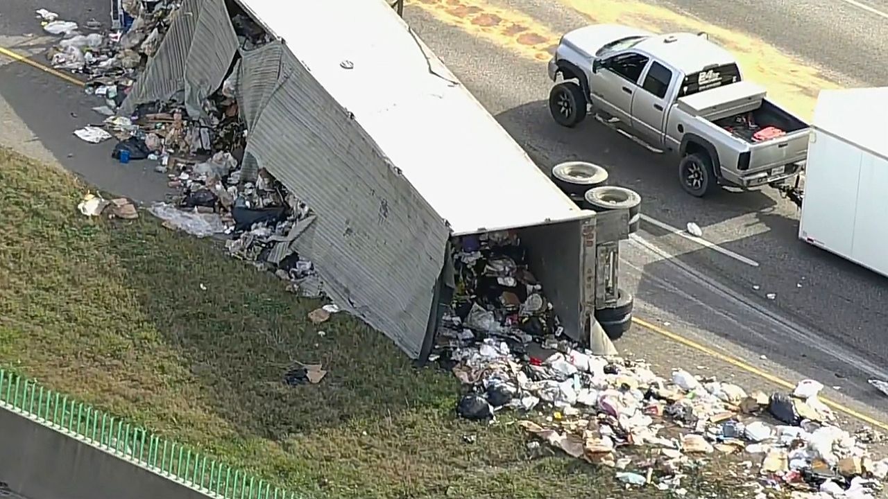 Η κυκλοφορία στην I-20 στο νότιο Ντάλας έχει σταματήσει για μίλια την Παρασκευή το απόγευμα, μετά την ανατροπή ενός ημιφορτηγού που μετέφερε σκουπίδια, κλείνοντας λωρίδες και σκορπίζοντας συντρίμμια στον δρόμο.